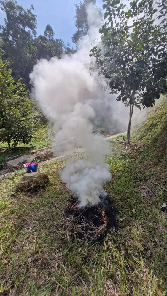 Normally, we will go to the farm to clear some grass that grows around the durian and fruit trees, put some fertilizer and coffee powder, and if we have energy, we will also spray vinegar on the trees. It is a good outdoor exercise, too, with the morning sun. And we will wear a farmer hat, but sometimes I forget and get sunburned, but still do not look like the Hong Kong artist Louis Koo.